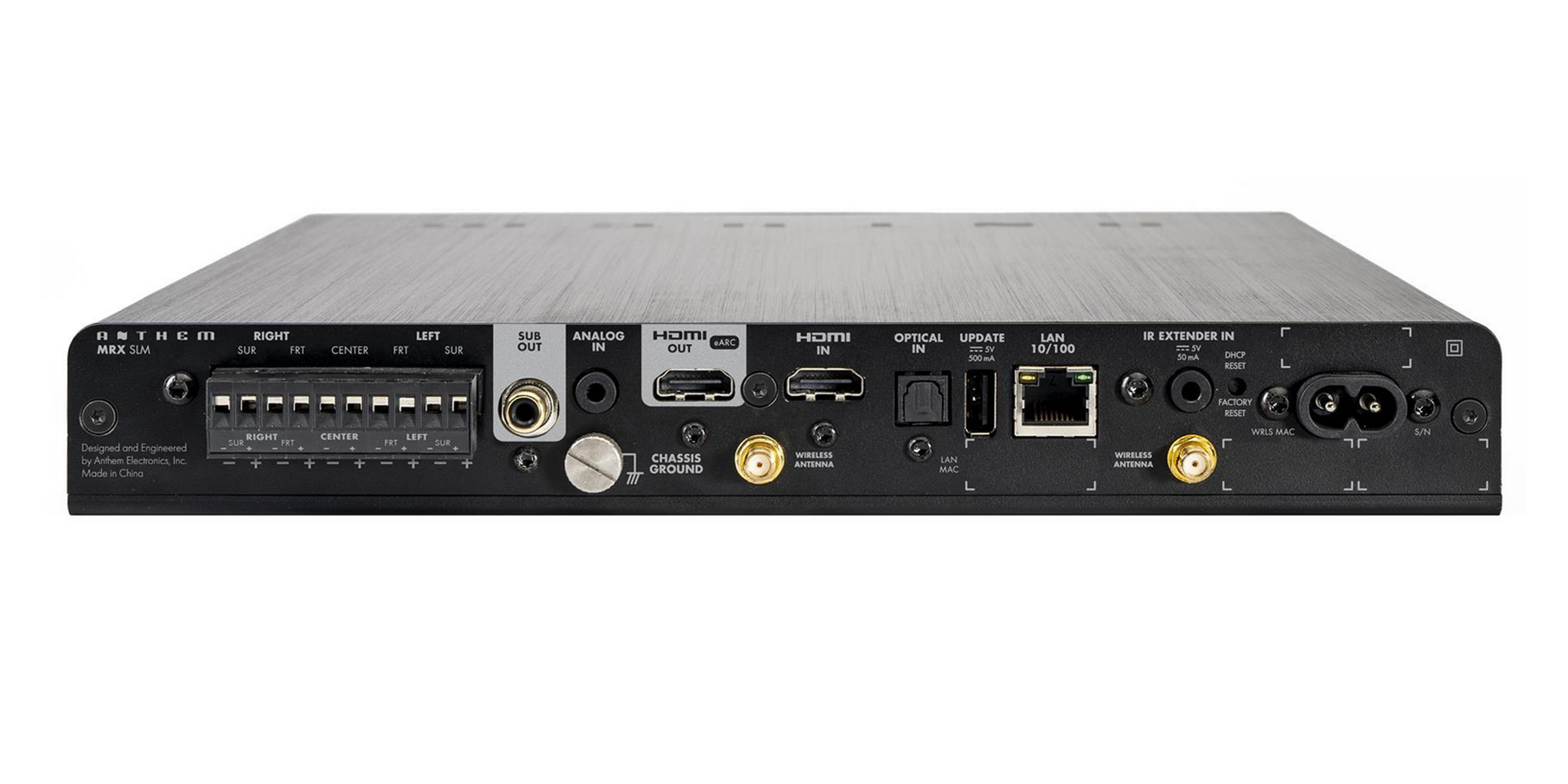Dzięki smukłej konstrukcji MRX SLM można łatwo go ukryć lub schować za telewizorem z płaskim ekranem, aby uzyskać płynną i usprawnioną konfigurację. To najwyższej klasy urządzenie bezproblemowo integruje się z Twoim systemem rozrywki, zapewniając wyjątkową jakość dźwięku, z której słynie Anthem.
